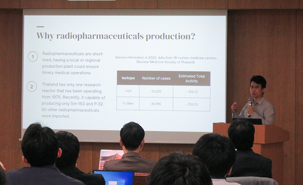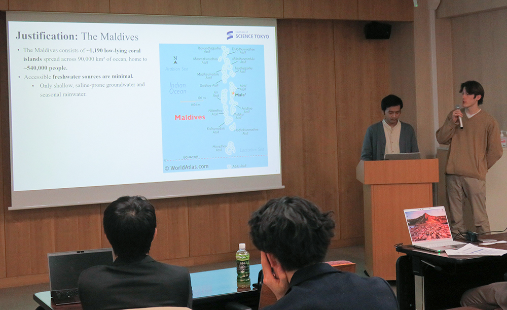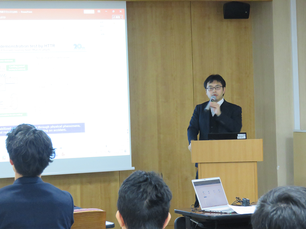 原子力イノベーター養成プログラム担当教員の相樂 洋教授による開会挨拶に続き、東京科学大学原子核工学コースの授業科目「革新的原子力システム設計プロジェクト」を受講した下記5名の学生が3つのグループに分かれ設計した原子炉について発表を行い、専門家と参加者からの質疑に応じました。